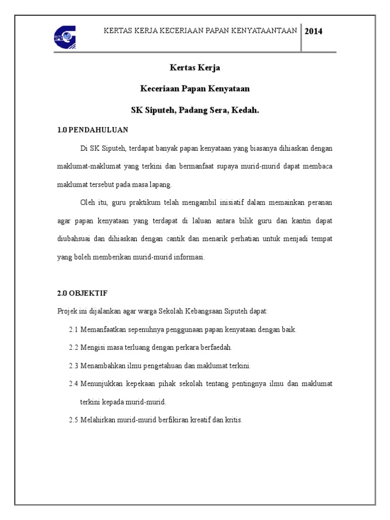 Contoh Kertas Kerja Papan Kenyataan Pdf